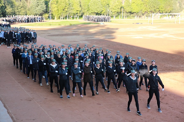 汇报表演第一项:分列式表演。伴随着雄壮的乐曲,受阅方队踏着整齐的步伐依次经过主席台。全体参训同学气宇轩昂,英姿勃发,口号嘹亮,步履铿锵,赢得台上领导们的阵阵掌声。