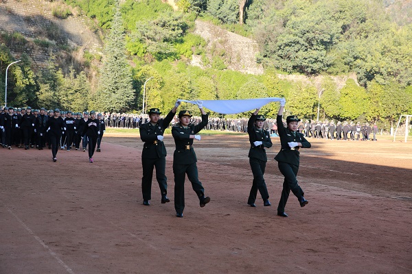 2016级新生军训结业典礼在雄壮的《中国人民解放军军歌》中圆满落幕。