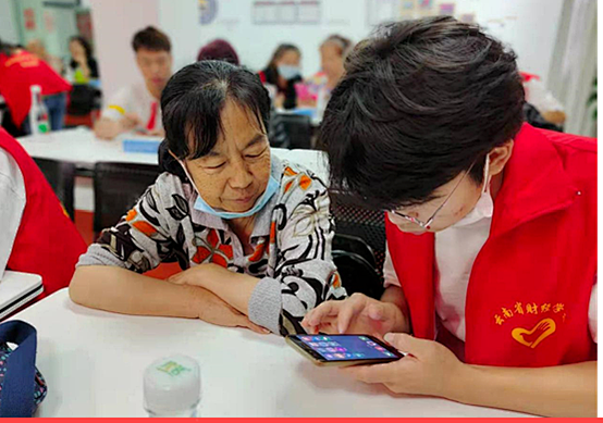 为解决社区老年人的“手机难题”,我校青年志愿者协会开展了“关注智能设备”为主题的帮助老年人使用智能手机志愿服务活动。通过指导老年人学习使用智能手机,社区老年居民们不仅学会了更多手机的使用方法,还提高了手机使用的安全防范意识,让社区老年人享受到科技带来的乐趣与便捷,增强社区老年人生活的幸福感、满足感。志愿者们对“零基础”的老年人进行一对一帮学,帮助老年人及时解决日常手机使用中遇到的问题,包括微信的使用、健康码申请日常生活缴费等为老年人提供“有温度”的服务,让老年群体一出门就能感受到温暖,在家里也能体验智能生活和智能办事。
