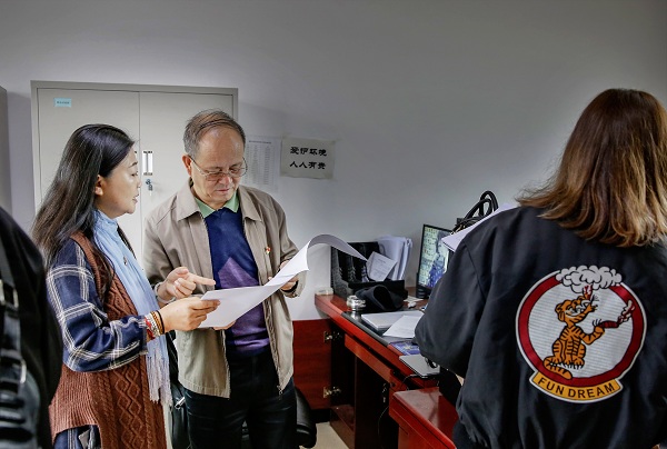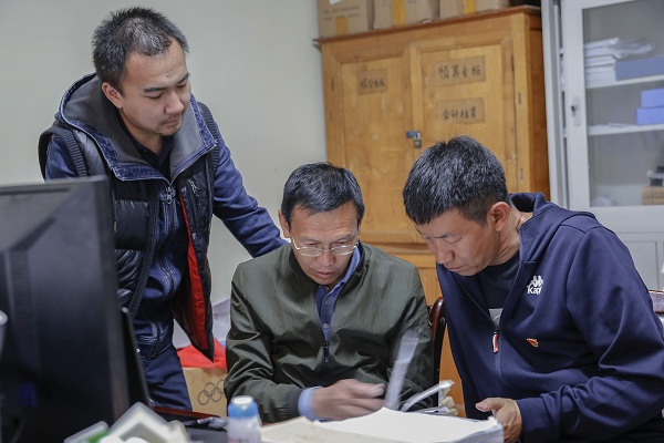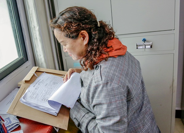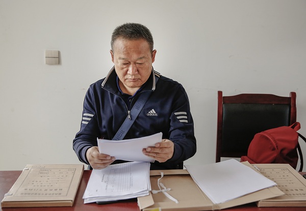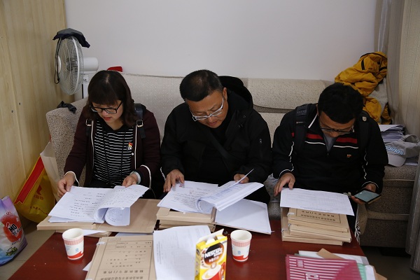 学校扶贫走访工作队在村委会认真翻阅查看挂帮户的档案资料