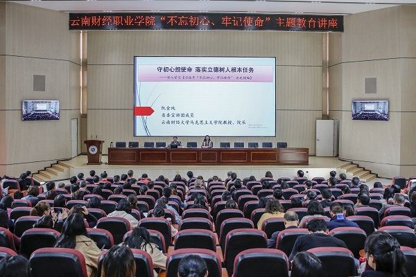 10月17日下午,省委宣讲团成员、云南财经大学马克思主义学院院长阮金纯教授应邀作“不忘初心、牢记使命”主题教育暨“万名党员进党校”宣讲报告会,学校领导、中层干部、全体党员教职工和入党积极分子培训班学员聆听了报告会,报告会由学校纪委书记杨红英同志主持。
