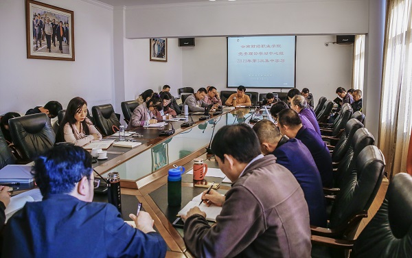 会上,纪委书记杨红英同志领学习近平新时代中国特色社会主义思想三十讲(第七讲 坚持党对一切工作的领导)。党委副书记、院长陶昌学同志传达国家职教改革方案。副院长李树伟同志组织传达学习“两会”精神。党委书记李思泽同志传达全国全省党建工作、党风廉政建设相关会议精神,传达了《中共云南省委高校工委 云南省教育厅关于切实做好在昆高校安全维稳工作的通知》(云高工函﹝2019﹞2号),并作出工作安排和部署。院长助理彭锋泽同志组织学习习近平在学校思想政治课教师座谈会上的重要讲话精神,思政部、学工部、宣统部围绕思想政治课教师座谈会精神从课程建设、“三全”育人、目标任务分别作交流发言。