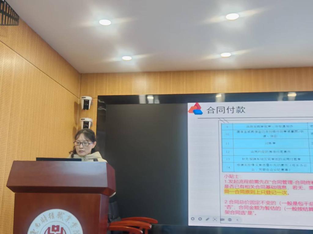 实操环节中,财务处任晓峰针对报销管理进行了全面的政策解读与实操辅导,内容涉及从单据填报到审批送审的整个流程。她不仅详细讲解了差旅、合同付款等关键节点的规范要求,还结合日常案例对常见问题与易疏漏环节进行了深入剖析和预警,旨在巩固业务基础,提高报销效率。