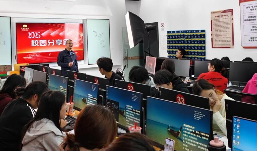 在此次交流分享会现场,叶总监将公司产品带到课堂,不仅详细介绍了公司电商运营的产品体系、产品在电商领域的运营策略,还结合自身从业经验,剖析了公司在开发电商运营产品市场定位、包装设计、营销推广等方面的标准、规范和关键技术点,为学院电子商务专业学生构建了互联网产品开发领域的应用标准与知识体系。