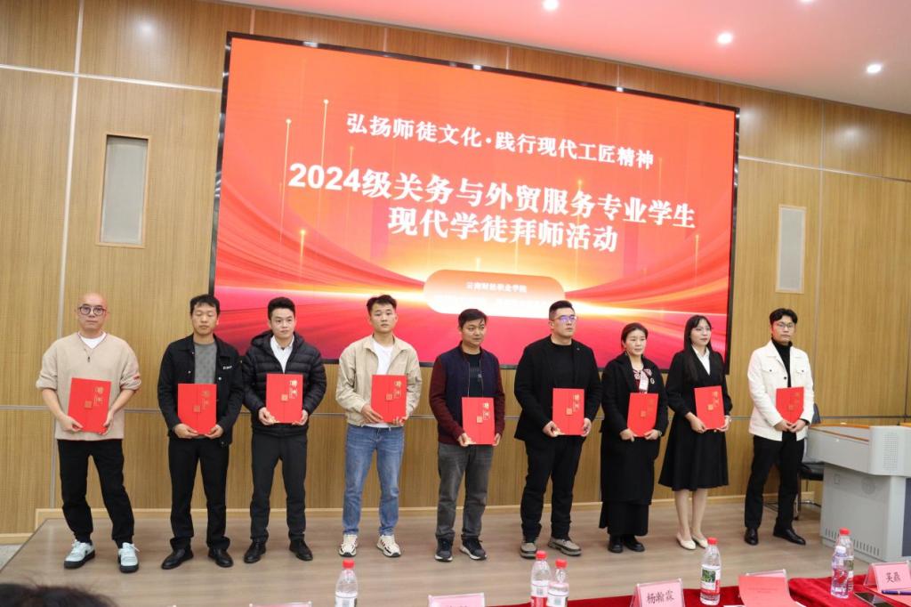 现代学徒制是连接校园与职场的重要桥梁,通过“师傅带徒、工学交替”的培养模式,既能发挥企业在实践技能培养中的优势,又能夯实学生的专业理论基础,助力学生成长为“懂理论、精技能、善实践”的高素质应用型人才,为跨境服务贸易行业注入新鲜血液。会上,主持人隆重介绍了参加拜师仪式的10位企业师傅,校企双方为企业师傅颁发聘书,表达感谢和祝贺。