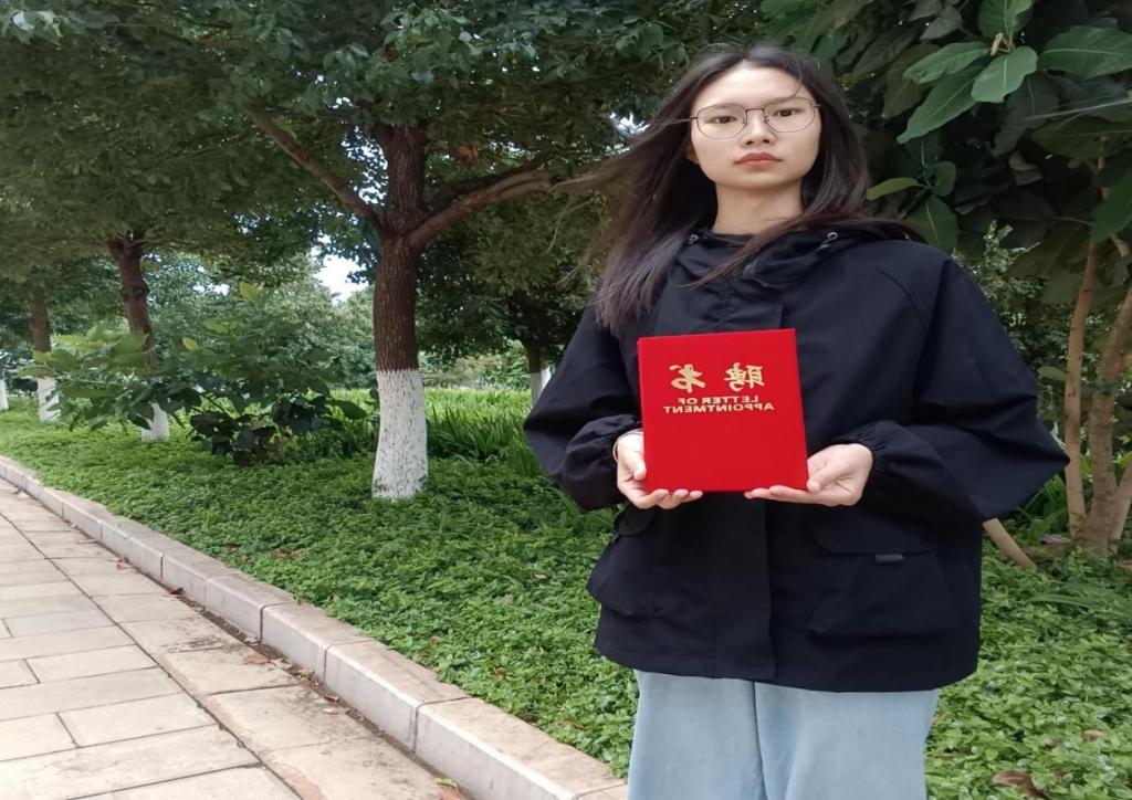 在校期间,她积极参与校园活动,斩获“三创赛”优秀奖、“互联网+”优秀奖项、“党的二十大”手抄报优秀奖等荣誉;同时获得跨境电子商务师、英语AB级、普通话二级乙等多项职业证书,参与“返家乡”活动获认证。凭借优异表现,她获评省级优秀毕业生,最终以云南省729名的成绩专升本考入云南财经大学电子商务专业继续深造。