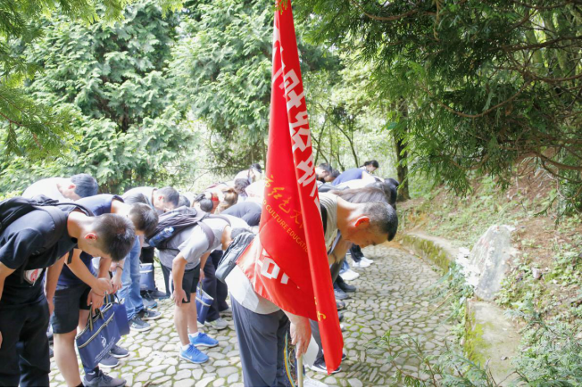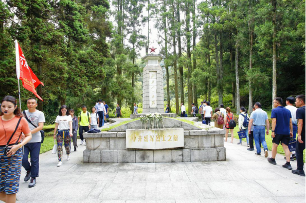 下午,全体学员来到位于井冈山北面的小井红军烈士先墓缅怀革命先烈。排着整齐的队伍、迈着沉重的步伐,学员们来到小井红军烈士先墓前,讲解员详细地为大家介绍了小井红军烈士先墓相关情况及曾志同志的感人事迹。在刻有毛泽东同志亲笔题词“死难烈士万岁”的纪念碑前,全体学员三鞠躬哀悼以表达对烈士们的无限哀思。