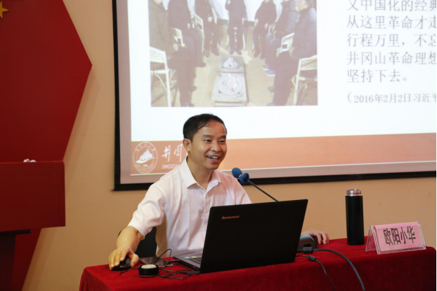 开班仪式结束后,进行了首堂专题教学课,由井冈山大学教授欧阳小华为全体学员带来题为“井冈山斗争与井冈山精神”的专题讲座。让学员全面了解两年零四个月的井冈山革命斗争史,认真领会了井冈山精神的丰富内涵,讲座中既有生动形象的革命故事,又有图文并茂的历史事件,让学员深受感动,仿佛回到了那段苦难辉煌的岁月,心情久久不能平静。
