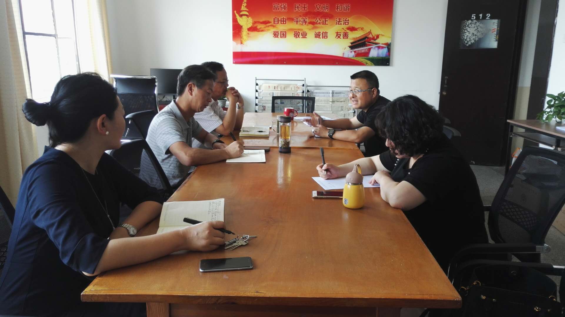 根据教育部社科司和省教育厅的要求,我院形势与政策课教研室于2019年5月6日下午12:30在办公楼第三会议室集中备课。学院院长陶昌学、纪委书记杨红英、学院副院长仲新、教务处处长李中京、思政部主任李如良和全体任课教师参加。