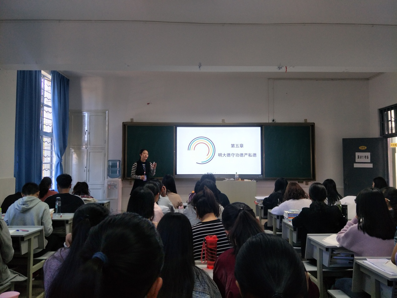 为进一步提升思想政治理论课教学效果,积极迎接学院评估工作,2018年11月14日星期三下午14:20,思政部在齐兴苑教学楼101教室集体听了吴徐巧芸老师的讲授的《思想道德修养与法律基础》课。内容为“第五章明大德守公德严私德”中的“第一节道德及其变化发展”。