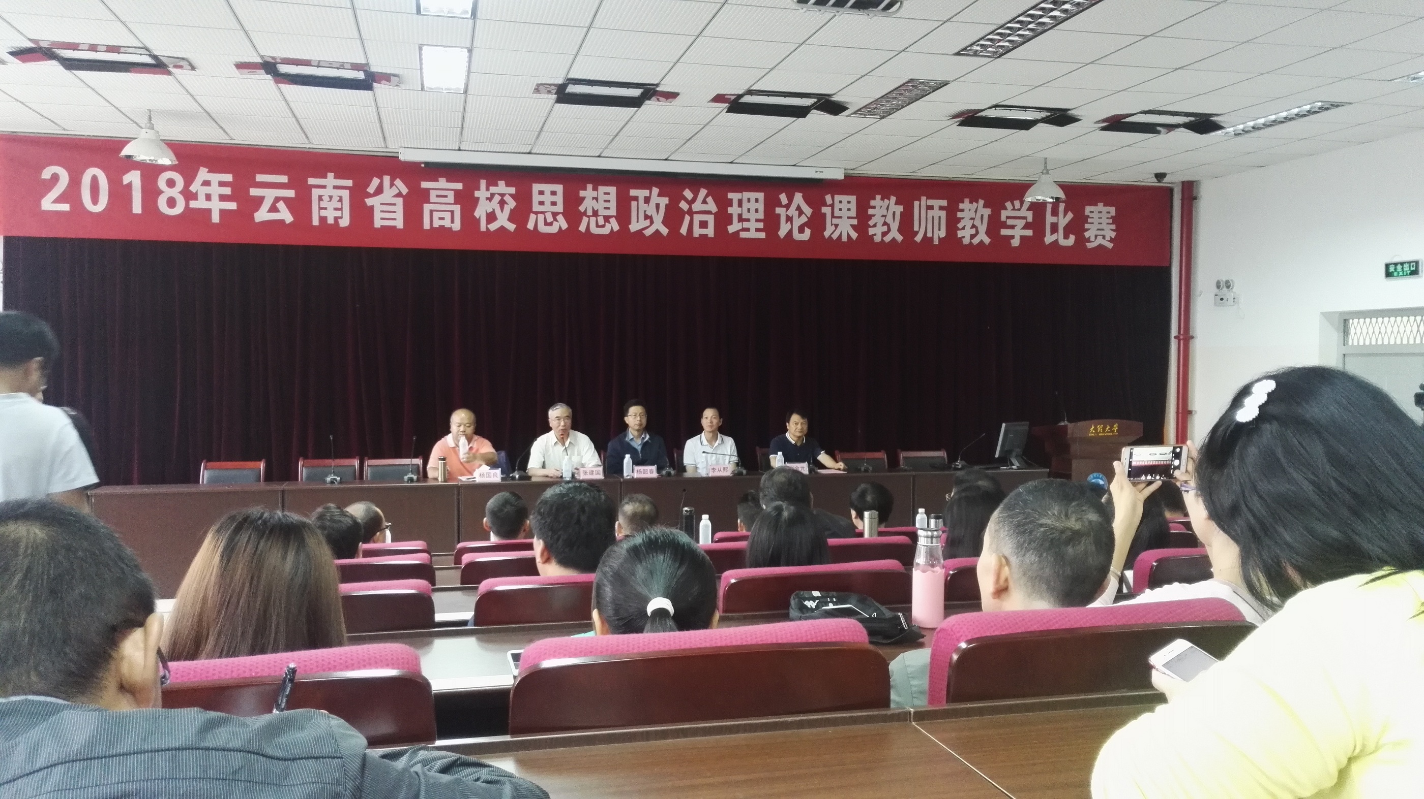 2018年6月30至7月1日,由云南省委高校工委主办的2018年云南省高校思想政治理论课教师教学比赛在大理大学举行。来自全省70多所高校的100名教师参加比赛,近200余名教师进行了观摩。学院思政部选派李凌老师参加比赛,李如良主任、黄稳书老师到现场观摩。
