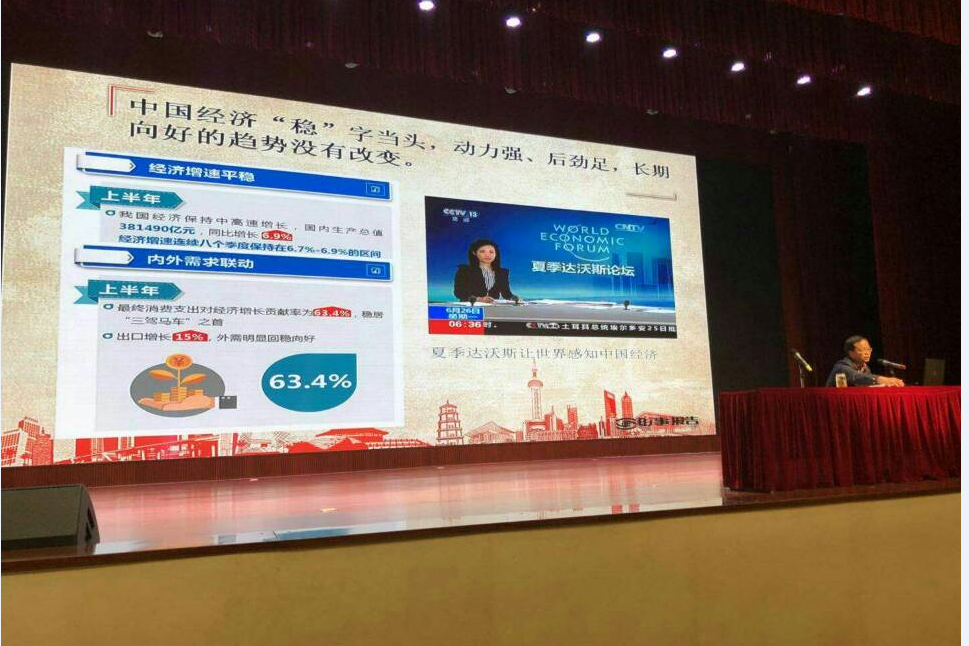 这是本学期《形势与政策》课第一讲,陶昌学院长在课上分别讲授了“当前中国经济形势增速换挡下行,趋势仍稳中向好”、“供给侧结构性改革引领经济发展新常态”、“中国不会落入所谓‘中等收入陷阱’”三个方面。学习中学生认真听讲、做笔记,陶院长勉励同学们:“作为当代大学生,大家要深入了解当前国内外政治经济形势、国际关系以及国内外热点,树立正确的世界观、人生观和价值观,积极投身中华民族伟大复兴的壮丽事业,让青春焕发出绚丽光彩。