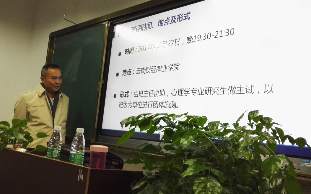 2017年11月7日晚19:30-21:30,在勤奋院102教室由云南省心理学会副会长、云南师范大学教授赵建新老师为2017级全体班主任做了2017级新生心理测评结果的反馈讲座。