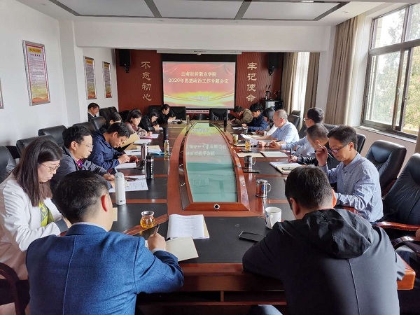 2020年7月20日下午,学校在第一会议室召开今年上半年思想政治工作专题会议,学校党委委员、组织部、党政办、宣统部、人事处、学生处、教务处、思想政治理论课教学部主要负责人、骨干教师以及二级学院书记参加了会议。