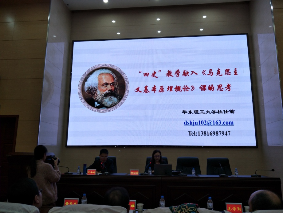 本次研讨会分大会主题报告、大会主题发言、分论坛研讨、集体备课会四个环节。在主题报告环节,教育部高校思想政治理论课教学指导委员会“马克思主义基本原理概论”分教指委委员、华东理工大学马克思主义学院院长杜仕菊教授作《“四史”学习融入<马克思主义基本原理>课教学的思考》的报告,华中科技大学马克思主义学院副院长黄长义教授作《问题中心的专题教学模式探究——以<中国近现代史纲要>课程为例》的报告,长江大学马克思主义学院院长姜学勤教授作《如何从一条江讲到一个国:<生命长江>思政选修课建设体会》的报告,广西民族大学马克思主义学院院长李玉雄教授作《关于高校思政课程与课程思政融通机制的思考》的报告。