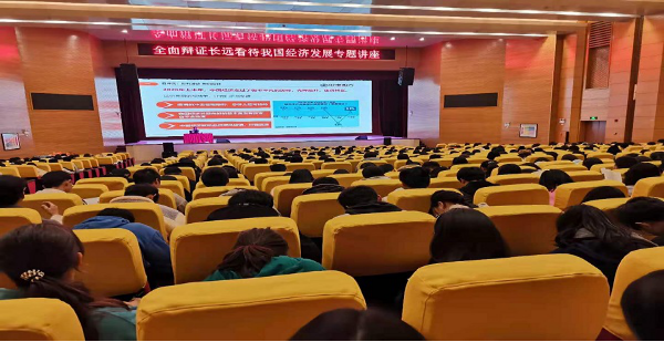 12月7日,党委副书记仲新老师为我校2018级、2019级、2020级全体大学生讲授了以“全面辩证长远看待我国经济发展”为主题的形《势与政策》课,仲老师用辩证的方法分析了我国经济的发展,让同学们对我国经济态势有了更加深刻的认识和理解。