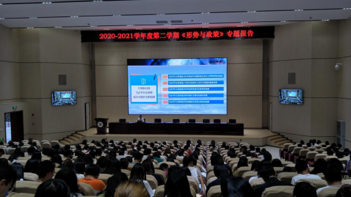 2021年5月13日,学校副校长严黄一仪同志在报告厅为我校2019级300多名大学生作题为“开创中国特色大国外交新局面”的形势与政策专题报告。