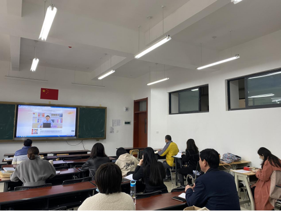 会后,全体思政课教师集中观看学习全国高校思想政治理论课教师“周末大讲堂”第七十九讲。讲座内容分为两部分,分别是“导学《以史为鉴、开创未来、埋头苦干、勇毅前行》(《求是》2022年第1期)”和“中国之治的制度密码——深入学习贯彻2022年全国两会精神”,由全国政协委员、东北师范大学党委书记杨晓慧教授主讲。