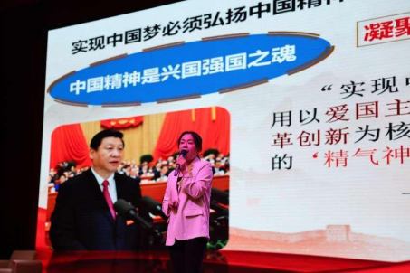 马克思主义学院吴琳娜老师,以中华民族不畏艰难险阻,攻坚克难,团结一心战胜汶川地震、河南洪水、新冠疫情等重大自然灾害事件为主线,诠释了中华民族在逆境中浴火重生、生生不息的伟大中国精神,号召全体师生做忠诚的爱国者。