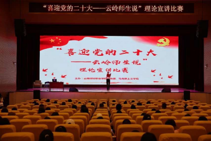 奋斗新时代、奋进新征程,为迎接党的二十大胜利召开,云南财经职业学院宣传部与马克思主义学院在学校党委的领导下,成功举办了“喜迎党的二十大——云岭师生说”理论宣讲比赛。4月26日下午,教师组比赛在学校大礼堂举行。学校党委副书记仲新亲临比赛现场,学校宣传部部、马克思主义学院、工商管理学院、财税与金融学院主要负责人出席了本次活动并担任评委。