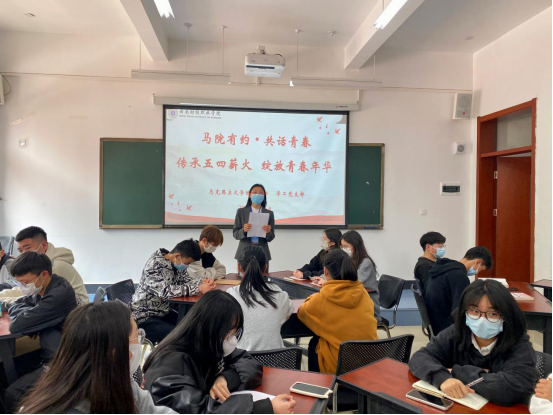 5月4日中午,马克思主义学院青年教师代表吴琳娜老师在铭德楼203教室给青年学生代表讲授了一堂以“坚定理想信念、共话青春使命”为主题的思政公开课。马克思主义学院党支部书记李凌主持公开课,学校学生代表、马克思主义学院党支部、学工党支部全体党员参加听课。