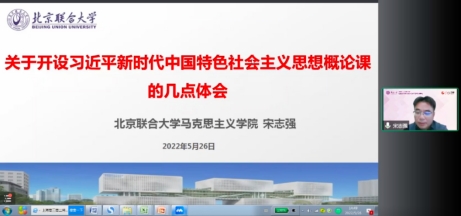 北京联合大学马克思主义学院副院长宋志强结合学院基本情况作了关于幵设“习近平新时代中国特色社会主义思想概论”课程的几点体会:第一,提高政治站位,坚持首善标准开好课程;第二,强化党的统领,构建课程运行体制机制;第三,遵循教学规律,保障课程教学规范运行;第四,深化改革创新,切实提升课程“三性一力”。他表示,北京联合大学马院已探索将“北京教育元素”融入思政课教学改革,将北京元素、红色元素“进教材、进课堂、进头脑”,打造本地化、本校化、实践化的具有北京特色的思政课。