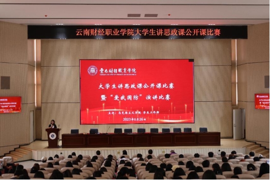 为全面推动习近平新时代中国特色社会主义思想进教材、进课堂、进头脑,贯彻落实《云南省全民国防教育三年行动计划(2023-2025年)》,深化学校思想政治理论课改革创新,不断增强青年学生的责任感、使命感和国防意识,在全校范围内形成关心国防、热爱国防、建设国防的良好氛围,根据省委教育工委相关工作安排,学校于6月26日在铭德楼报告厅举行“大学生讲思政课公开课”比赛暨“爱我国防”演讲比赛。
