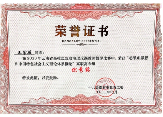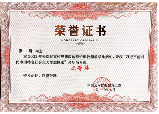 为深入贯彻落实习近平总书记关于“大思政课”建设的重要指示批示精神,深入推进新时代高校思想政治理论课改革创新行动计划,2023年6月,省委教育工委举办2023年全省高校思想政治理论课教师教学比赛。我校马克思主义学院2名教师荣获三等奖,2名教师荣获优秀奖。在比赛中,我校张萌老师荣获《习近平新时代中国特色社会主义思想概论》组三等奖,赵红丹老师荣获《思想道德与法治》组三等奖,王紫薇老师荣获《毛泽东思想和中国特色社会主义理论体系概论》组优秀奖,杨华军老师荣获《形势与政策》组优秀奖。