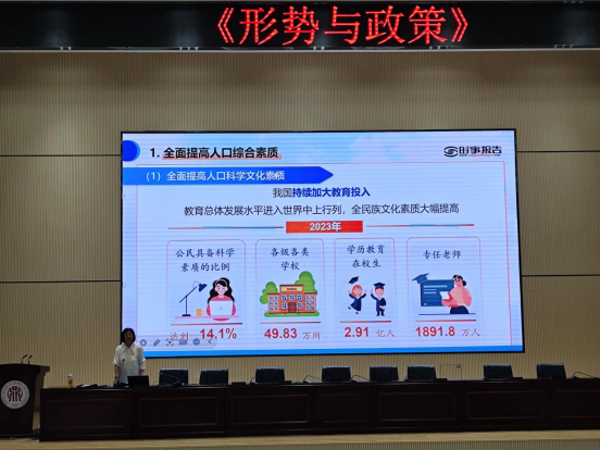 2025年5月8日晚,沈豫琼副校长为我校7个教学班级近360余名学生讲授题为《以人口高质量发展支撑中国式现代化》的形势与政策课。