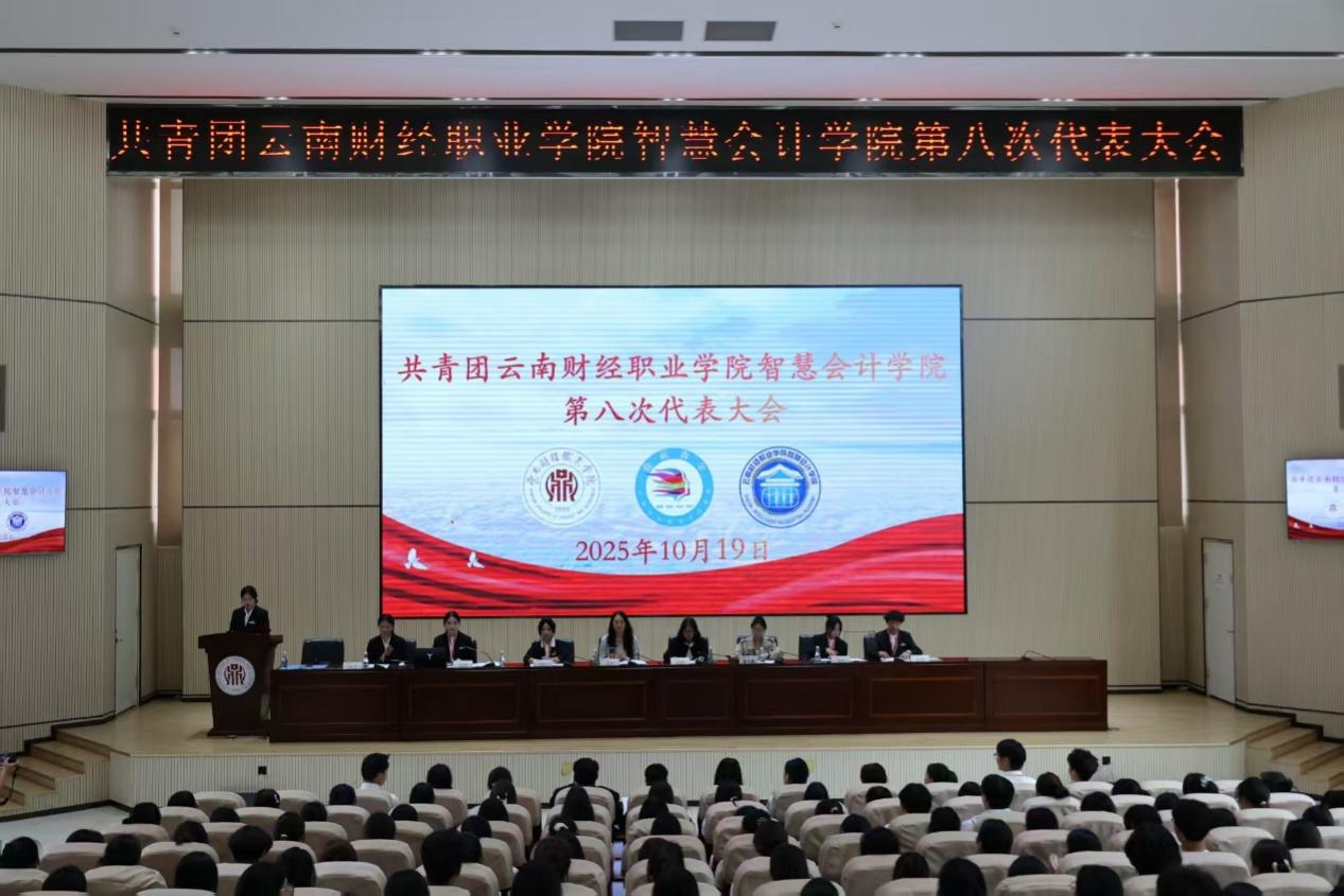 在学校党委的坚强领导和校团委的大力支持下,2025年10月19日,云南财经职业学院智慧会计学院第七次学生代表大会、共青团云南财经职业学院会计学院第八次团员代表大会在铭德楼报告厅顺利召开,智慧会计学院党支部副书记、校团委教师、智慧会计学院团总支书记出席会议。