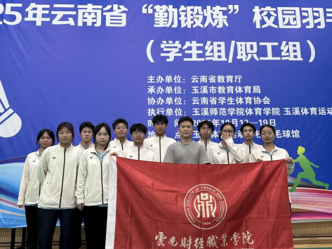 2025 年 10 月 13 日至 17 日,由云南省教育厅主办的 2025 年 “勤锻炼” 校园羽毛球联赛总决赛在玉溪市体育运动学校圆满落幕。作为全省校园羽毛球领域的年度重要赛事,本次比赛首次实现大中小学与教职工组别 “全学段覆盖”,设置 5 个竞赛组别及团体赛、单项赛两大类别,吸引全省 1200 余名师生选手同台竞技。云南财经职业学院由李成林、赵克明带队, 11 名学生运动员组成代表队,在大学乙组赛事中奋勇拼搏,斩获混合团体第四名、男子单打第二名、男子双打第五名、女子双打第六名和女子单打第七名的成绩,再度彰显了财职院学子的竞技实力与体育精神。