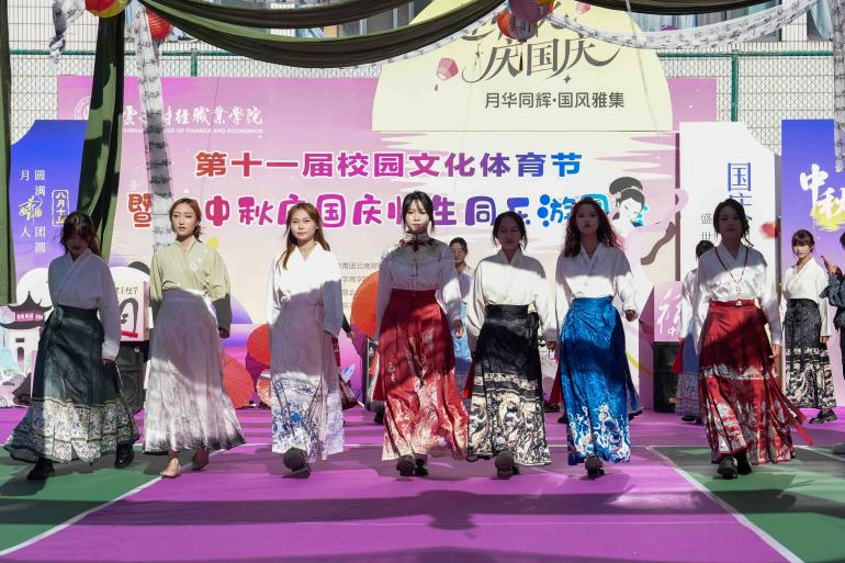 金秋送爽,双节同庆,9月28日,在云南财经职业学院篮球场,一场以“月华同辉.国风雅集”为主题,以“沉浸式体验+文化传承+爱国教育”为核心的双节游园会隆重开启。学校师生齐聚一堂,在传承中华优秀传统文化的同时,厚植爱国情怀,共贺祖国华诞。