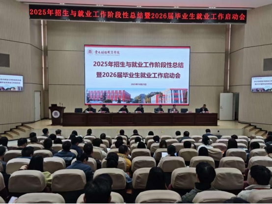 为了全面总结2025年招生就业工作经验,凝聚全校力量共同开启2026届毕业生就业工作新篇章,10月23日学校召开2025年招生就业工作阶段性总结暨2026届毕业生就业工作启动会,本次会议由党委委员、副校长沈豫琼主持。