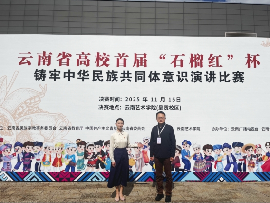 为进一步深化学校铸牢中华民族共同体意识教育,推进中华民族共同体建设。11月15日,由云南省民族宗教事务委员会、云南省教育厅、共青团云南省委举办的首届“石榴红”杯铸牢中华民族共同体意识演讲比赛决赛在昆明开赛。