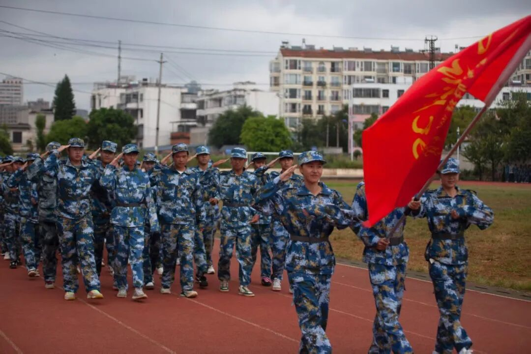 大会在庄严的国歌声中拉开帷幕。龙泉校区与大观校区田径场上,同学们军姿挺拔、精神抖擞,依次进行训练科目展示,动作整齐划一、口号铿锵有力,展现出良好的军事素养和昂扬的精神风貌。