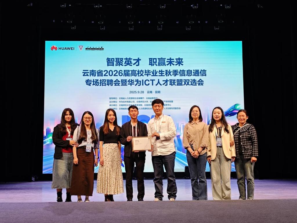 2025年9月28日,“智聚英才・职赢未来” 云南省高校毕业生秋季专场招聘会暨2025年华为ICT人才联盟双选会在云南师范大学呈贡校区举办。信息工程学院党委书记李超强带队,48名师生共同参会,深度对接ICT领域优质资源,为毕业生就业与专业人才培养搭建桥梁。